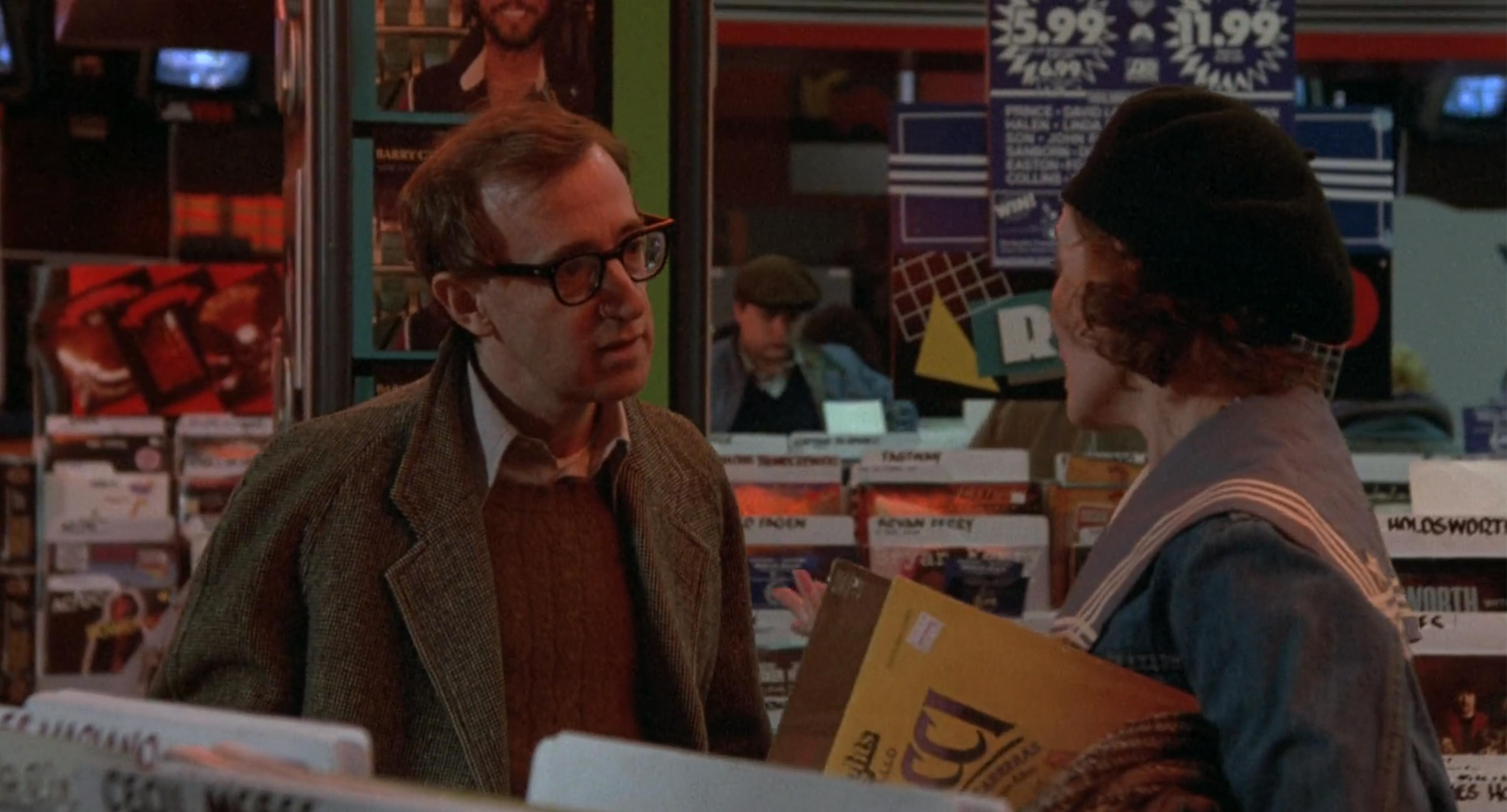 Near the end of the film, two characters run into each other in a record store. Earlier in the year, they endured a terrible date. Now they sift through albums, joke about the evening and tentatively reconnect. Nothing dramatic happens. They simply talk. For Allen, conversation is both the problem and the solution.